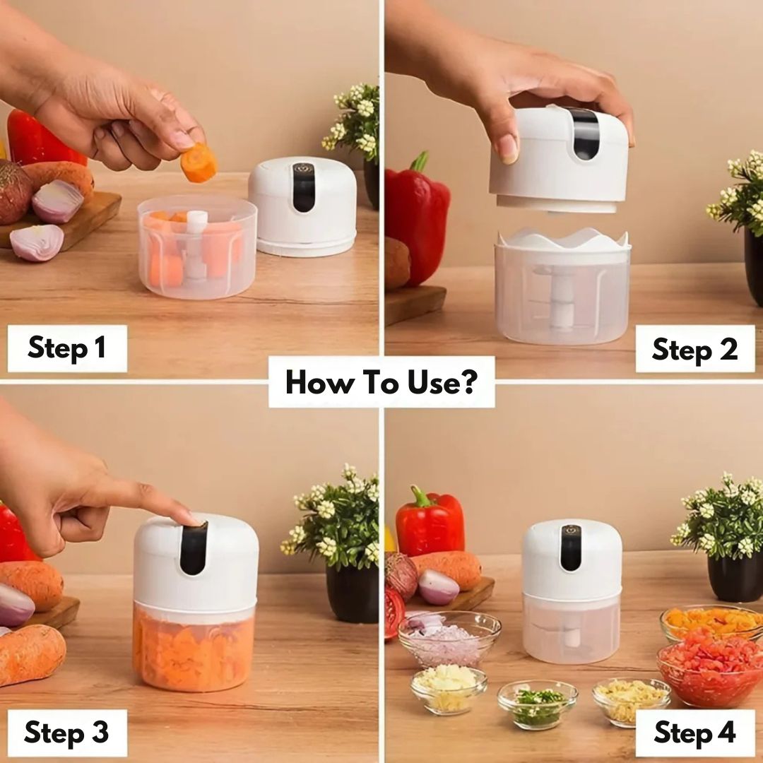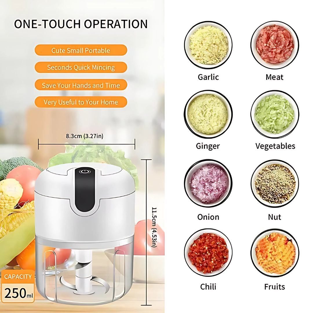 USB Rechargeable Mini Electric Chopper 250ml | Electric Garlic Onion Vegetable Chopper | Compact & Cordless Kitchen Grinder - Uniqou™