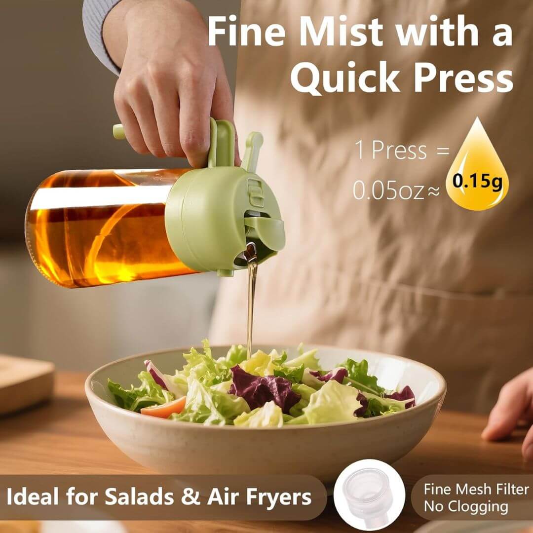 Upgrade your kitchen with this 2-in-1 Oil Dispenser Bottle, combining the best of both worlds: a precise oil sprayer and a smooth-pour dispenser in one sleek glass container. Whether you're lightly misting veggies for the air fryer or pouring oil for a stir fry, this bottle has you covered with a simple press of a button.