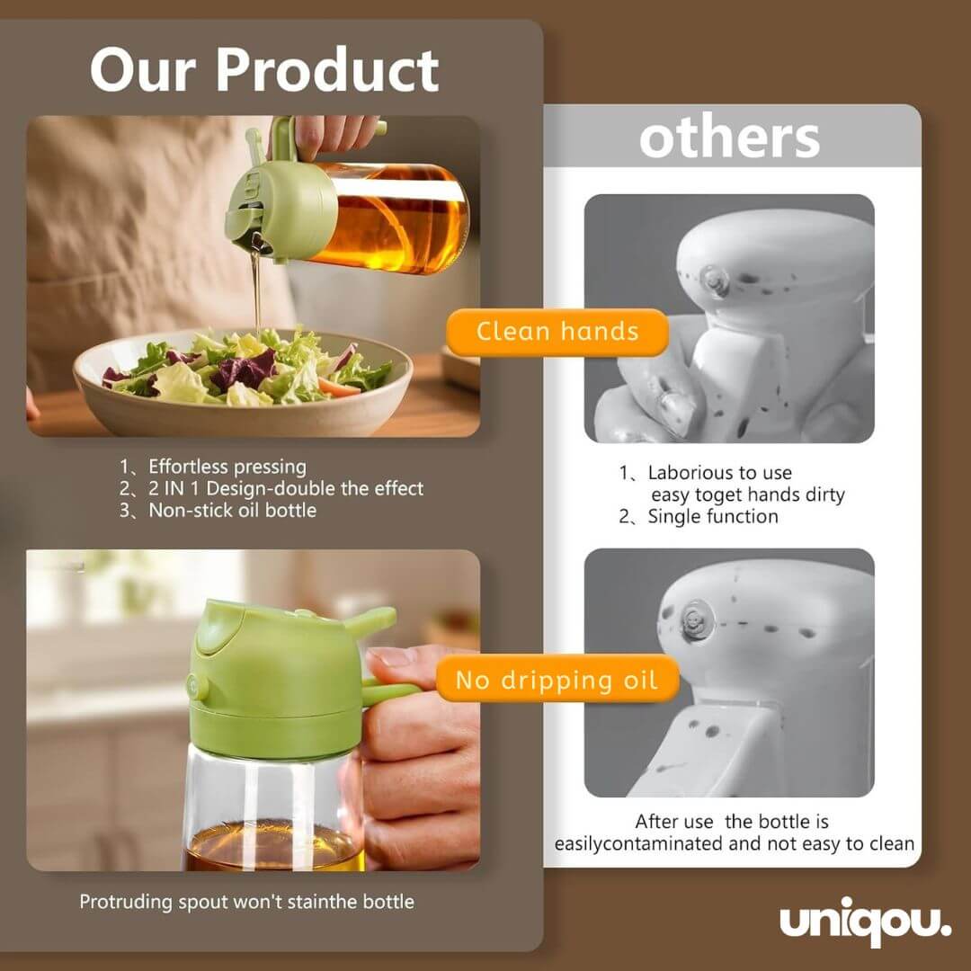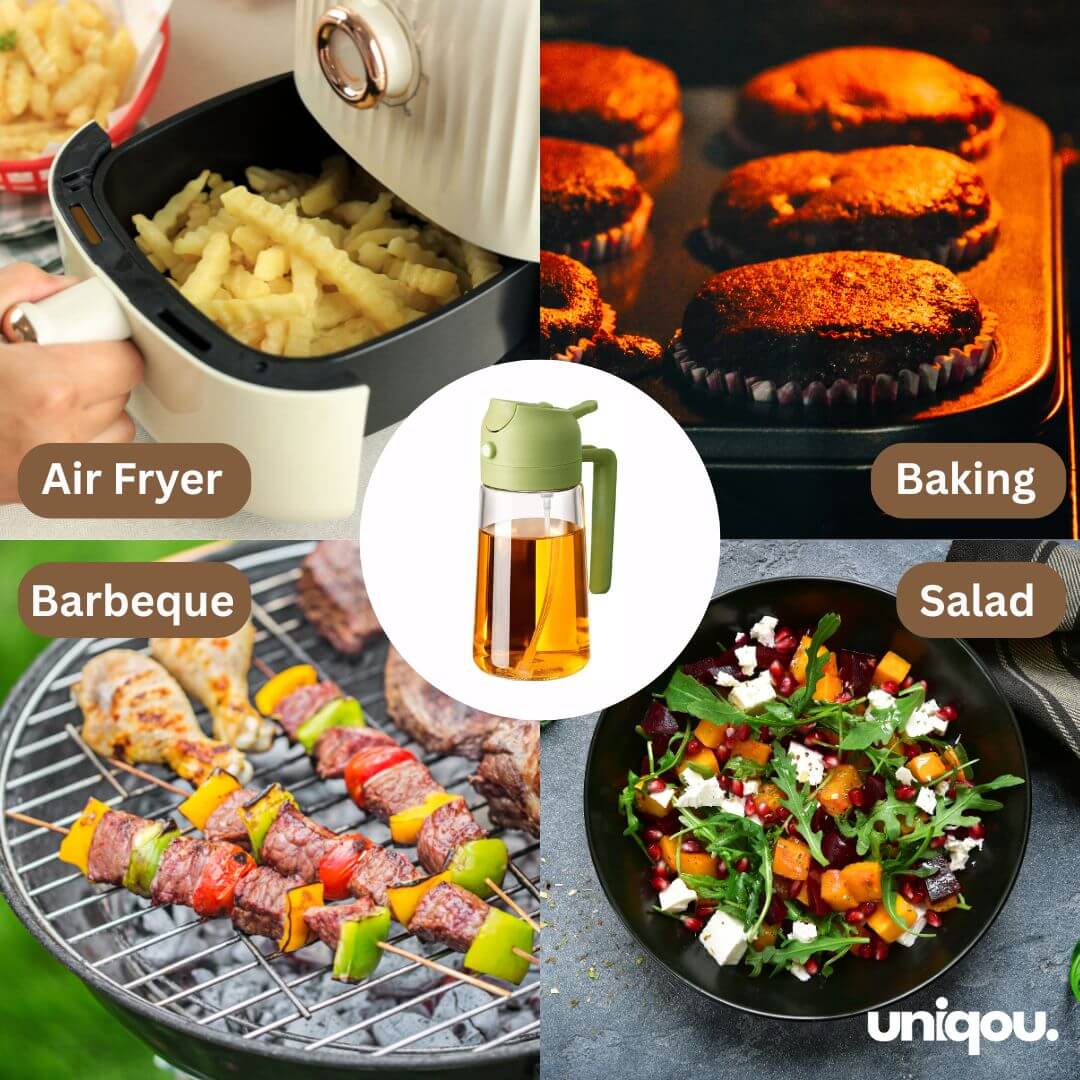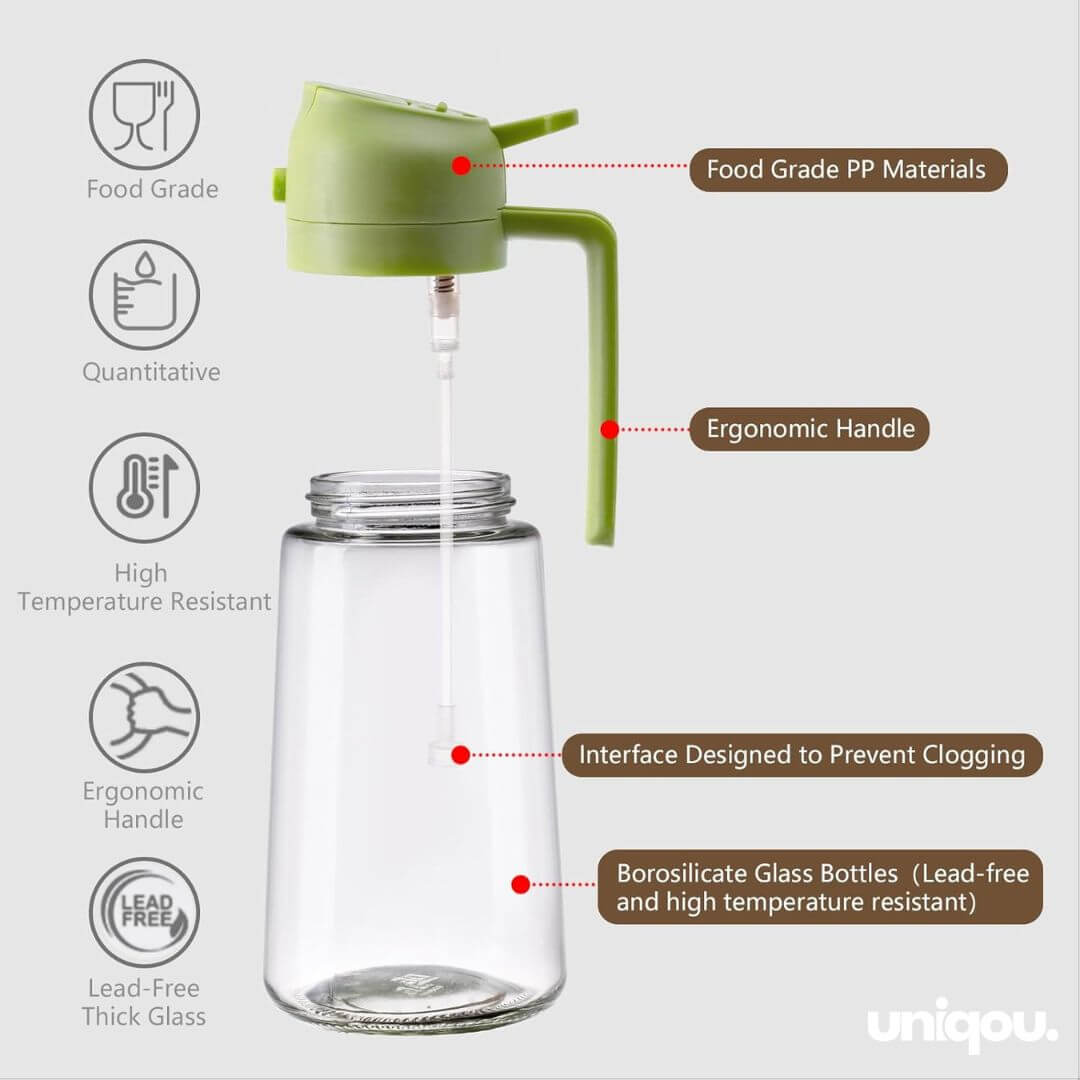 2-in-1 Oil Dispenser Spray & Pour Bottle | Premium Glass Food Grade Dispenser and Sprayer Bottle 500ML | Air Fryer Salad BBQ Roast - Uniqou™